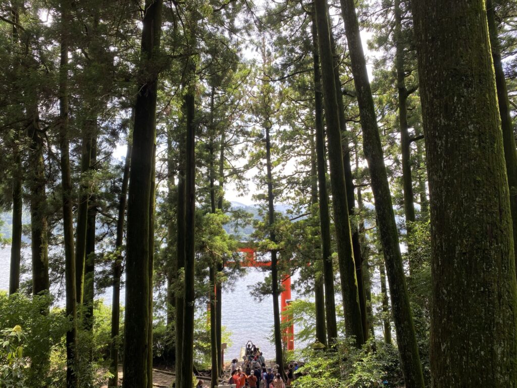 よくSNSで見かける芦ノ湖から見える鳥居ですが、階段から鳥居までずらっと長蛇の列が伸びており、さすがに無理だねと断念。せっかくだしと写真を撮りたい方は早めに行くか、時間に余裕を持って行くといいかと思います。外国の方が多く、8割が海外の方かな?という感じでした。