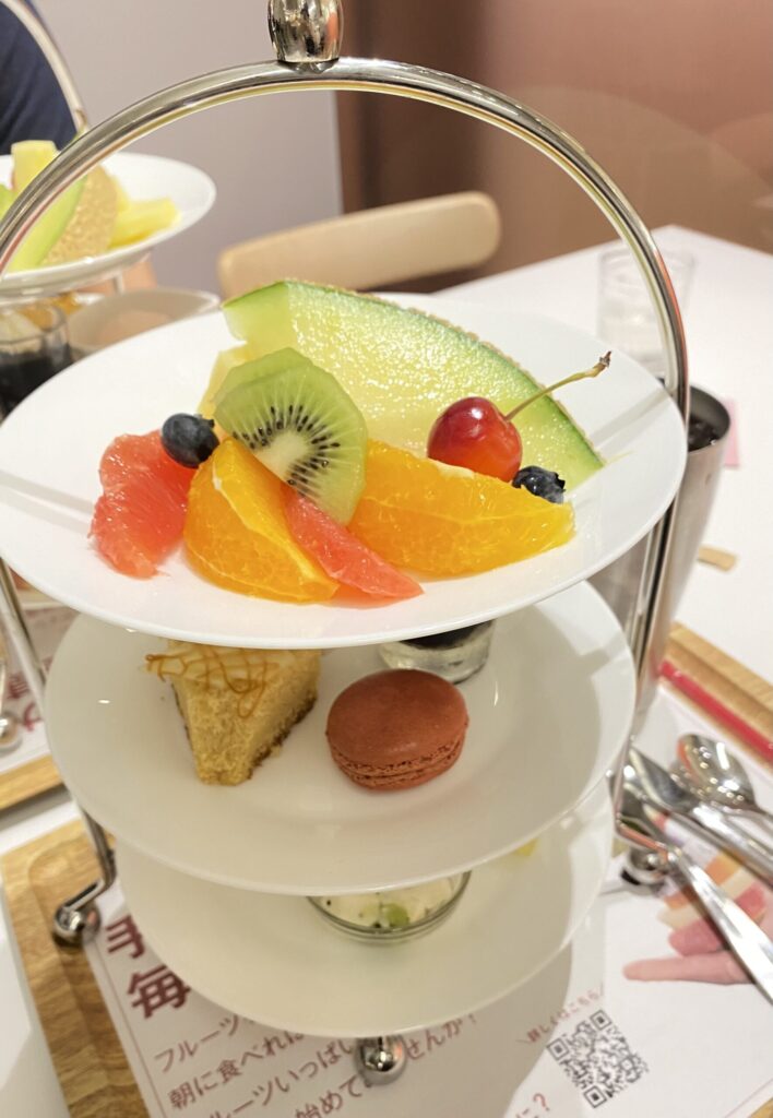 果物屋さんなので、果物が美味しく、そのまま出てくるので、小さい子でも食べやすいです。一番上のフルーツはほぼ息子に食べられました。